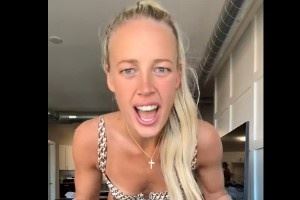 术后不久,这位WNBA的人气球员,就带着护具穿着比基尼边唱边跳,视频中她正在唱的是歌手Renée Rapp的歌曲《I Think I Like You Better When You're Gone》。
